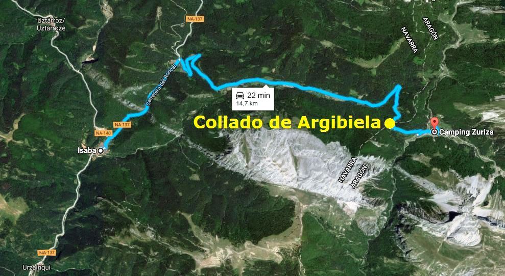 Existen dos itinerarios típicos para abordar esta ascensión: desde Isaba (la ruta larga) o desde el Collado de Argibiela (la ruta corta y la que finalmente realizamos). Para llegar al punto de inicio hay también dos posibilidades: la ruta del Valle de Roncal (la mejor viniendo de Pamplona) y la del Valle de Hecho (la mejor viniendo de la zona de Jaca).En nuestro caso, salimos de Pamplona, por lo que fuimos hasta Isaba y, pasando el pueblo, continuamos por la carretera NA-140 en dirección Francia hasta el desvío a la derecha a pocos kilómetros (señalizado con Zuriza) que nos permite coger la NA-2000 hasta nuestro destino.