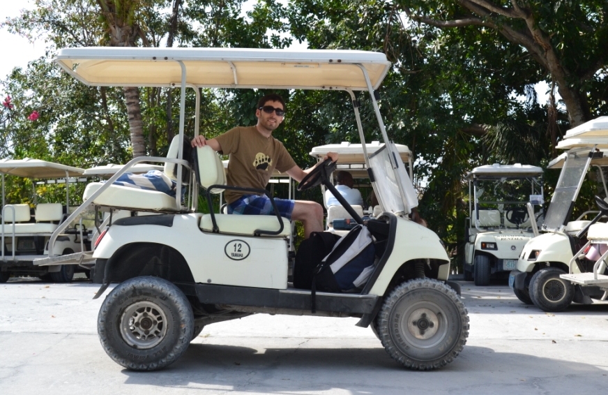 Llegamos a Harbour Island en un pequeño bote dispuestos a hacer el clásico de la isla: ¡alquilar un cochecito de golf! Y es que aquí no hay ningún otro medio de transporte. Al principio nos sentíamos un poco estúpidos y la situación pintaba ridícula (ir deambulando por la isla en ese carricoche), pero le cogimos rápidamente el punto y el gustillo y disfrutamos «conduciendo» de un lado a otro.