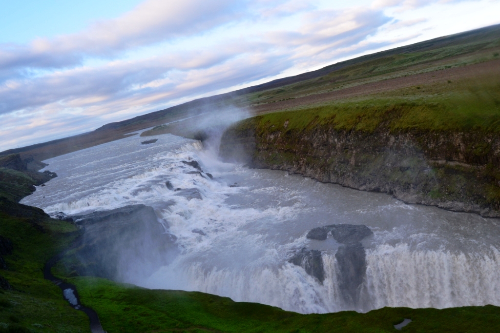 Al salir de Blue Lagoon, nos dirigimos directamente nuestra primera gran foss («cascada»), se trata de Gulfoss. Es la más famosa del país (probablemente por su proximidad a la capital) y tiene una caída de 32 meteros. Después de un par de descargas de lluvia, llegamos allí justo cuando se abría un claro y pudimos disfrutar de este espectáculo de la naturaleza sin gente, a nuestro aire, y con unas vistas de infarto. ¡Totalmente recomendable!