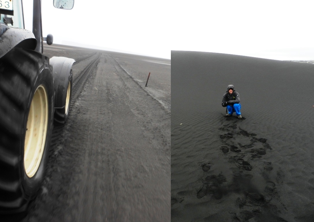 ¡Para visitarlo nos llevaron montados en un camión de heno! (sí, sí, de heno), atravesando un campo de cenizas, restos de la erupción del volcán Eyjafjallajökull. A medida que atravesábamos esta zona el tiempo iba empeorando a pasos agigantados (¿recordáis lo de que el tiempo en Islandia cambia en 5 minutos?). No llovía, pero hacía un frío y un viento que daba miedo. Aún así, llegamos a lo alto del promontorio y allí estaban los frailecillos esperándonos.