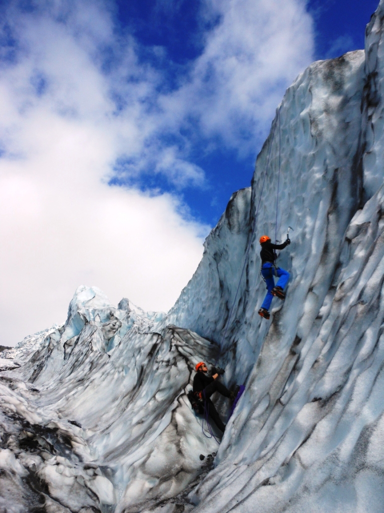 ¡¡El tour del glaciar ha sido espectacular!! Hemos disfrutado como unos enanos. Al final solo éramos Rafa y yo, un chico de Israel (Thal) que estaba de año sabático después del servicio militar y nuestro gran guía, Gestur. Además de las distintas paredes del glaciar que escalamos, probamos a picar un poco de hielo de glaciar, a beber del agua que se funde del hielo e hicimos un recorrido bastante chulo.