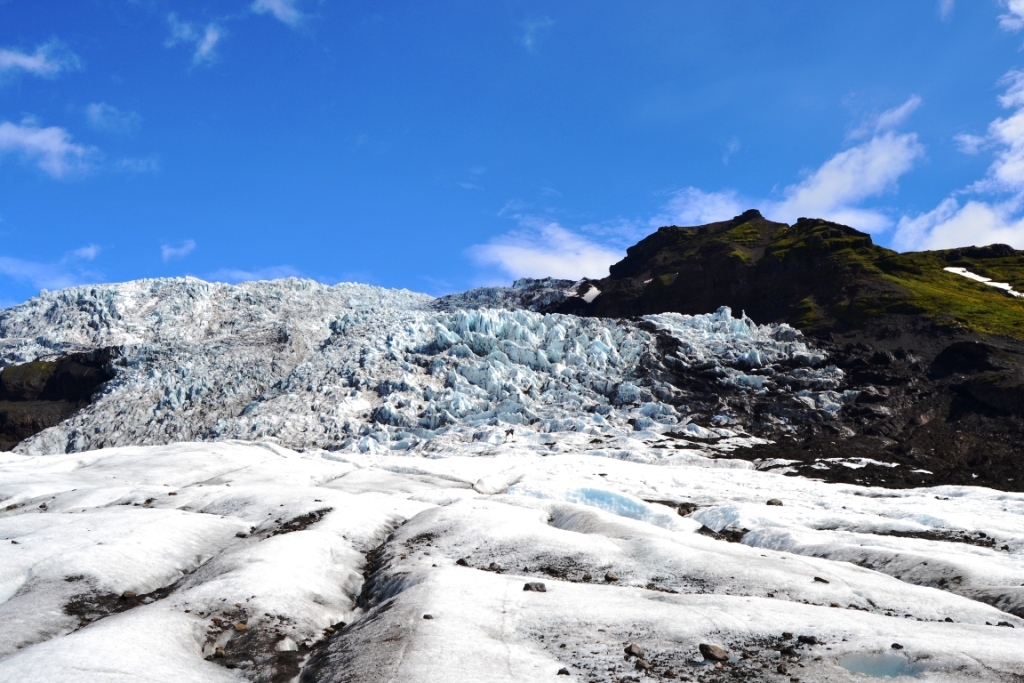 Ayer nos levantamos muy temprano porque teníamos que deshacer parte del camino para volver al Parque de Vatnajökull. Ahí habíamos reservado una actividad Glaciar X-Treme con los guías de Glacier Guides. Además de esta posibilidad (que es la más intensa), tienen otros packs en los que se puede hacer un cómodo paseo por el glaciar y un recorrido en barca por la bahía de Jökulsárlón, sólo la ruta por el glaciar, o la que hemos elegido nosotros, que se centra en el glaciar y en la escalada en hielo (algo que nunca habíamos hecho).