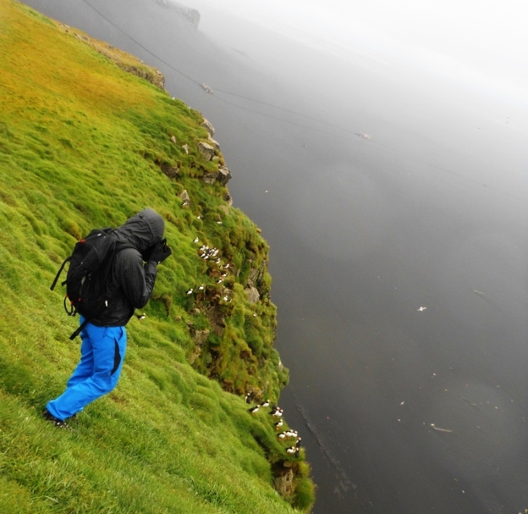 Para la actividad de los frailecillos, teníamos que llegar a Ingólfshöfdi, un promontorio de 76 metros de alto que en julio y agosto se convierte en lugar de cría de estas aves, una de las más típicas de Islandia.