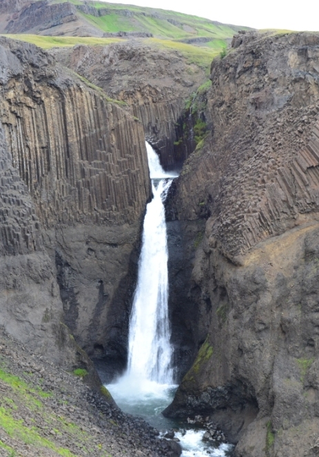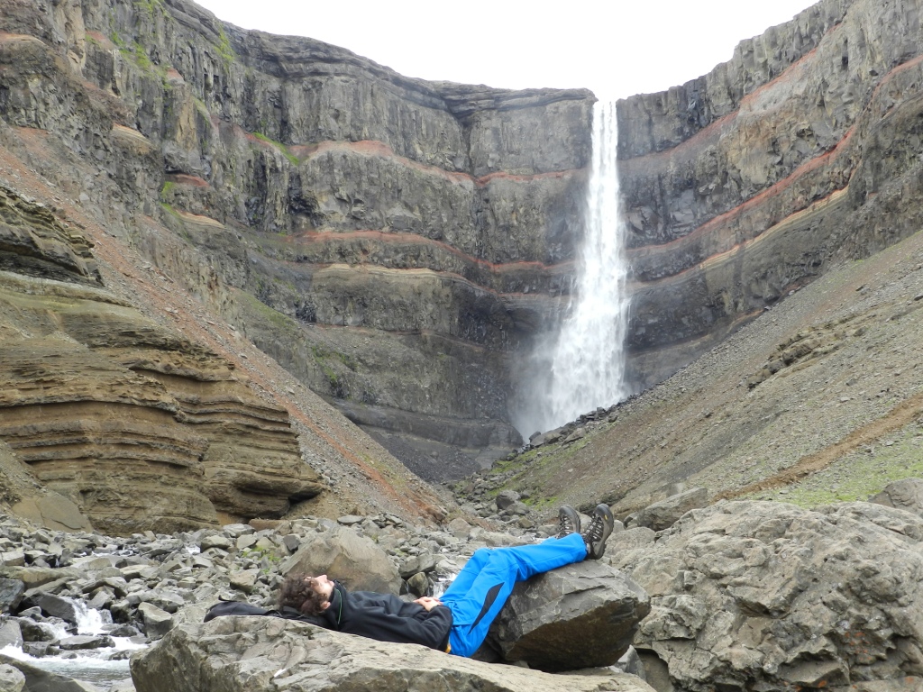 Antes de llegar, paramos a hacer una mini-ruta para ver la cascada de Hengifoss. Llevábamos ya demasiado tiempo sin ver fosses, y empezábamos a desarrollar una especie de necesidad de ver agua cayendo. A esta cascada se llega haciendo una sencilla ruta muy bien señalizada. Es una foss con una caída de agua bastante imponente y que está rodeada una vez más de muchas columnas de basalto. Vale la pena caminar hasta aquí para tomarse un buen bocadillo al pie de la caída de agua.