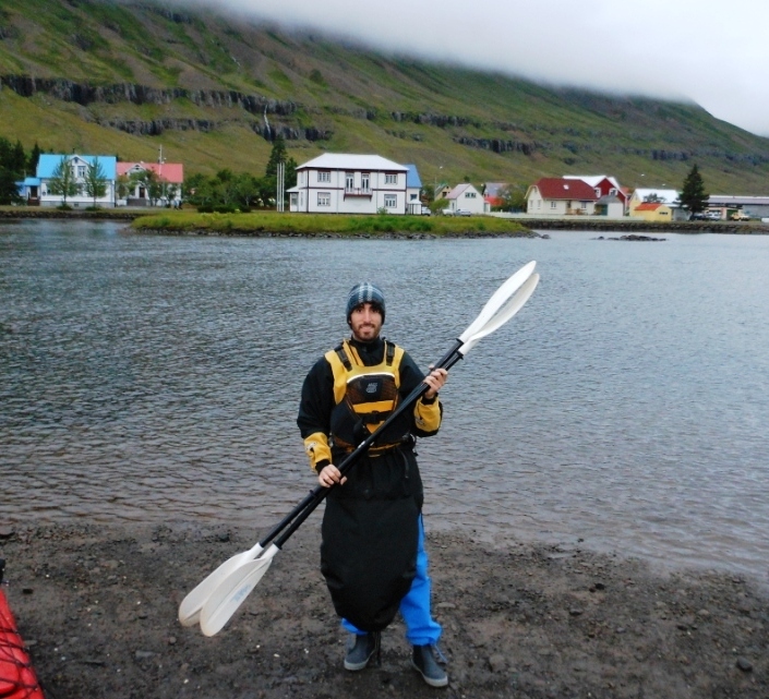 Yo ya estaba muy acostumbrado al kayak, pero desde luego no tan equipado. Esta ruta nos sirvió para varias cosas: por un lado disfrutar de paz y tranquilidad remando, rodeados de unas laderas preciosas, y por otro para ver que nuestro guía era una especie de Superman nórdico. Al acabar la ruta entre Rafa y yo nos las veíamos negras para cargar con uno de los kayaks (no sé de qué están hechos los kayaks islandeses, pero deben llevar revestimiento de plomo) y Odsson el sólo llevaba dos kayaks… ¡¡uno en cada hombro!!. Increíble.