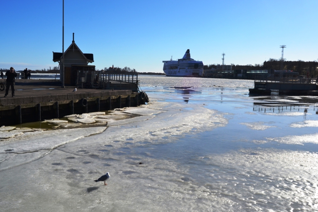 Rápidamente llegamos a la zona del puerto. No me lo podía creer, a pesar de la buena temperatura, ¡el mar Báltico seguía congelado! Había muchos barcos que estaban atrapados ya que no podían circular. Claramente, los días anteriores las placas de hielo habrían sido bastante más grandes y potentes, pero para mí ya fue un espectáculo digno de ver lo que tenía ante mis ojos.