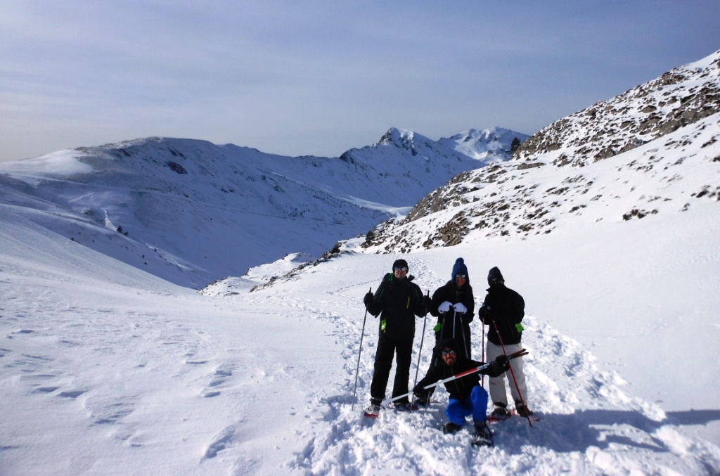 Desde El Ferial iniciaremos un descenso bordeando una ladera que nos lleva directos a un amplio valle rodeado por cercanas cumbres nevadas.