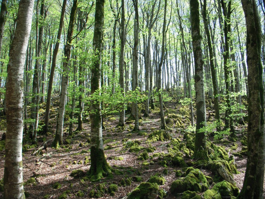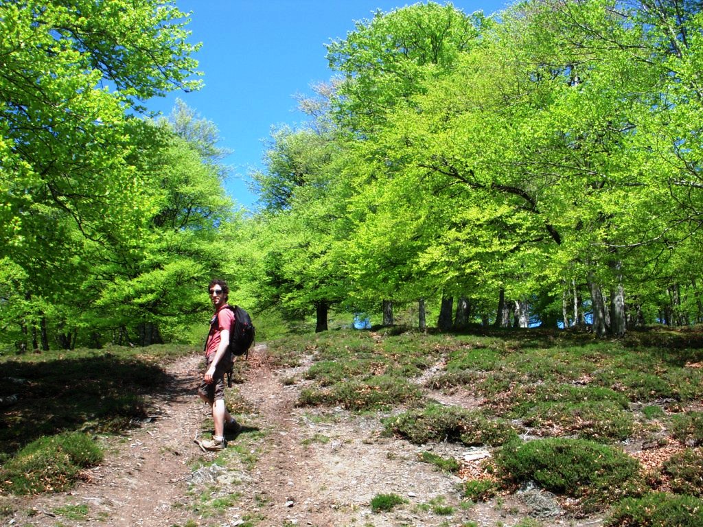 Comenzamos caminando por la carretera y pronto salimos de ella para adentrarnos en un bonito bosque dominado por los característicos hayedos de Navarra.
