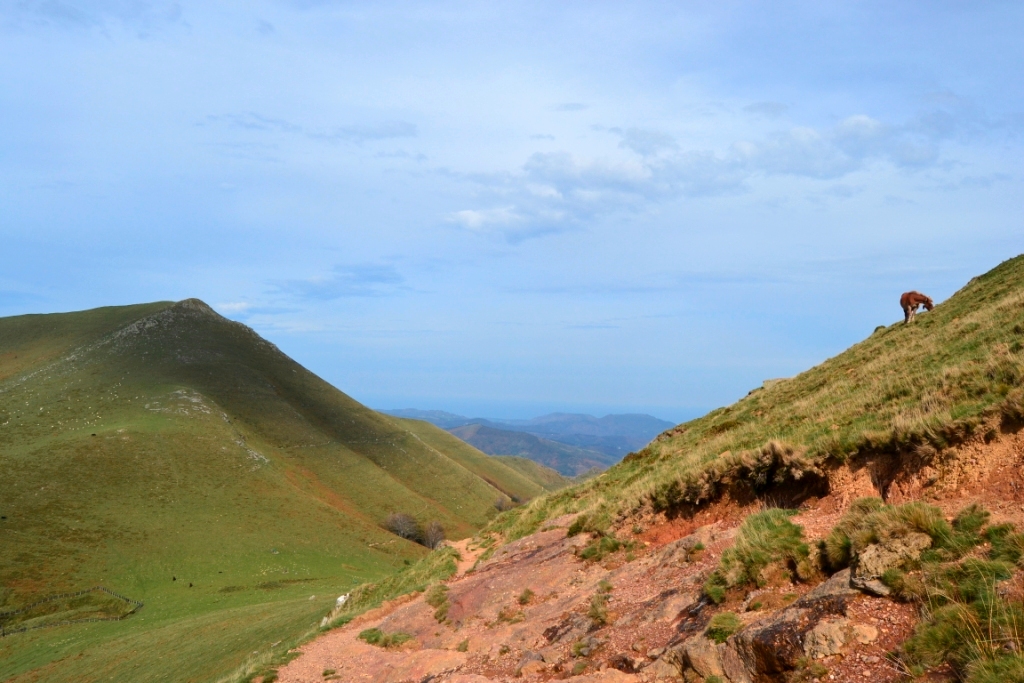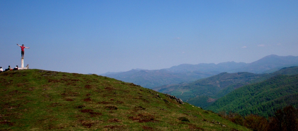 Nos quedan aún los 2 últimos kilómetros que son, a su vez, los de mayor desnivel y más expuestos ya que la última parte es la subida a lo alto de la colina que termina en pico para hacer cima. A lo lejos, arriba de todo, se distingue la Ermita de la Trinidad de Ituren, ¡que tiene la friolera de más de tres siglos! (fue construida en 1692).