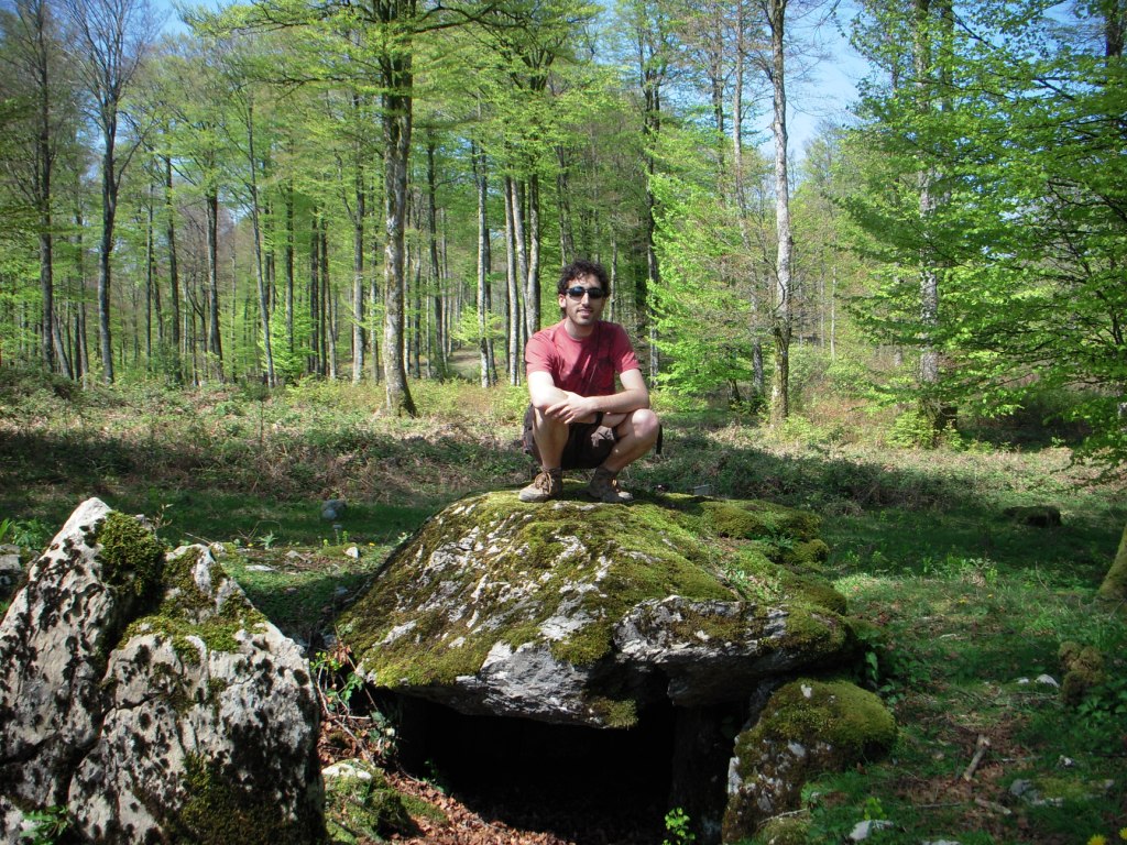 Sin darnos cuenta llegaremos a un cruce de caminos que nos ofrece múltiples posibilidades. Nosotros optamos por desviarnos un par de kilómetros (entre ir y volver a este punto) de la ruta original haica Sosartxipi para ir a ver el Dolmen de Pittortzar. El entorno donde se encuentra no puede ser mejor: un rincón perdido de este genial hayedo, de suelo rocoso cubierto parcialmente por una densa capa de musgo al estilo de cualquier película prehistórica.