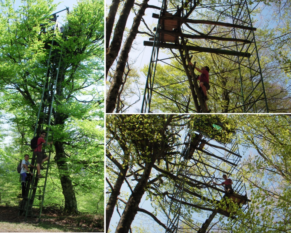 Tras esta fugaz escapada, volvemos a la intersección y seguimos el camino original. A lo largo del siguiente kilómetro nos cruzamos con varias palomeras construidas en lo alto de los árboles que cuentan con unas escaleras artesanales, pero de aspecto bastante robusto, para acceder a ellas. Este tramo es bastante llano, pero no debemos acostumbrarnos pues la pendiente final está a la vuelta de la esquina.