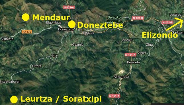 Cerca de Doneztebe y Elizondo (junto al Valle de Baztán en Navarra) hay innumerables rutas de montaña. Aquí recojo una con un desnivel bastante majo y alguna que otra pendiente pronunciada: Mendaur (1131 m), y otra más sencilla que acaba siendo casi más un paseo que otra cosa: Soratxipi (1069 m).
