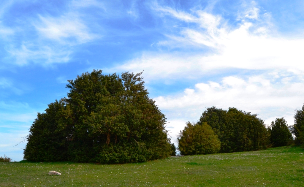 Pasados este punto, estamos ya muy cerca del final. Continuamos caminando hasta encontrarnos con un amplio claro de hierba con unos curiosos setos/matorrales independientes unos de otros, que parecen plantados así a propósito.