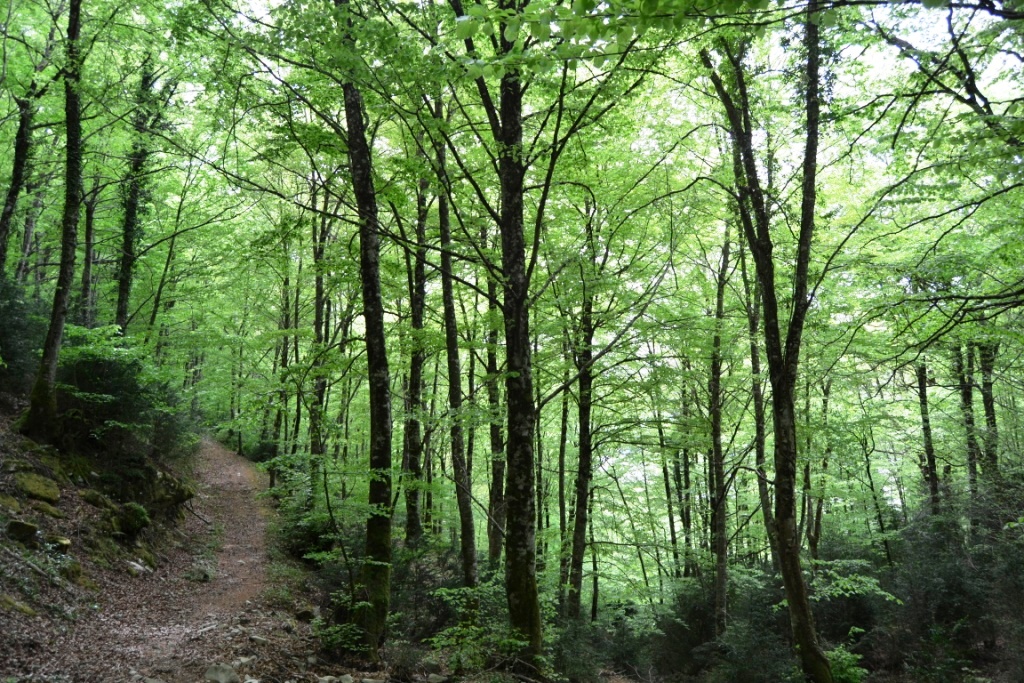 Si nos paramos brevemente a contemplar la vista, podremos observar la inmensidad del hayedo de Quinto Real.