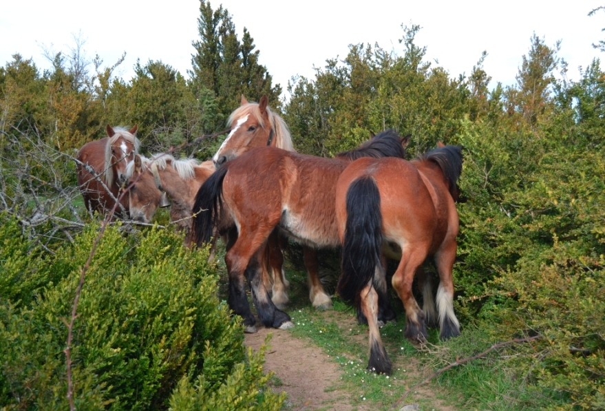 Para volver deshacemos nuestros pasos hasta llegar a la bifurcación de la que hablaba antes, solo que esta vez en lugar de coger a derecha (de forma que volveríamos exactamente por el mismo camino que al subir), giraremos a la izquierda, siguiendo el camino que llanea levemente antes de empezar el descenso. Nosotros nos retrasamos ligeramente porque llegó un momento en el que un grupo de caballos nos bloqueaba el paso, y tuvimos que espantarlos para que nos dejasen pasar.