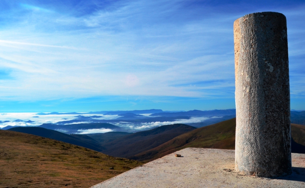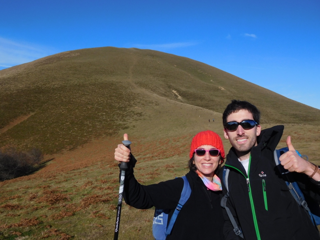 Tras un rato caminando siguiendo los hitos que marcan el camino más corto hacia la cima (adornada por el clásico vértice geodésico), llegamos a lo alto del Saioa, uno de los montes más emblemáticos de la zona y de Navarra en general.