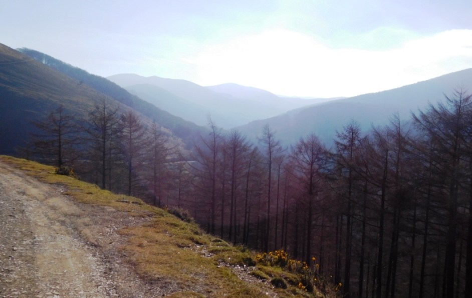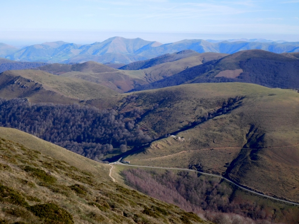 Si nos metemos entre los arbustos buscando la vista análoga en dirección opuesta, llegaremos a avistar la carretera que nos ha traído desde Zubiri hasta Eugi.