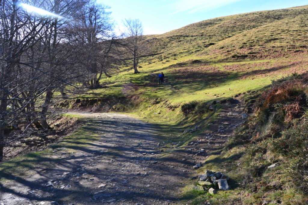 Llegará un momento (la única bifurcación realmente) en el que tendremos que elegir entre continuar ascendiendo desviándonos ligeramente a nuestra izquierda o tomar el camino de la derecha que continúa llaneando para después descender. Tomamos el de la izquierda, ya que el otro será el que cojamos a la vuelta, cuando bajemos de la cima.