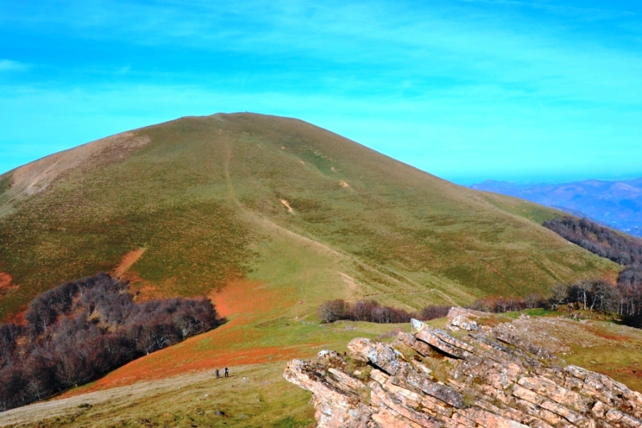 Tras un primer tramo de ascenso continuo, llegamos a una zona más llana con unas bonitas vistas del Saioa, de la cercana zona fronteriza con Euskadi y del resto de montes tirando hacia el Valle de Baztán.