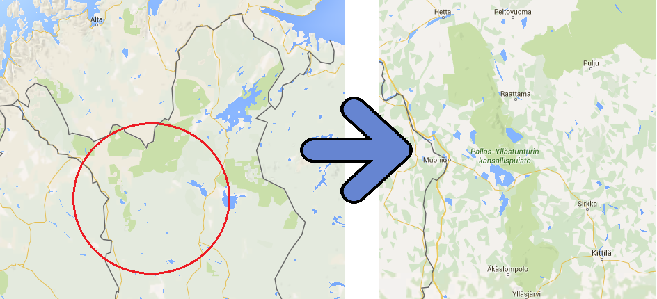 El itinerario es algo que no tengo aún muy claro porque vamos a hacer rutas diarias de aproximadamente 40 km atravesando el parque nacional de Yllas-Pallas-Ounastunturi. Lo que sí que sé es que empezaremos el primer día en Äkäslompolo y acabaremos 6 días después en Hetta.
