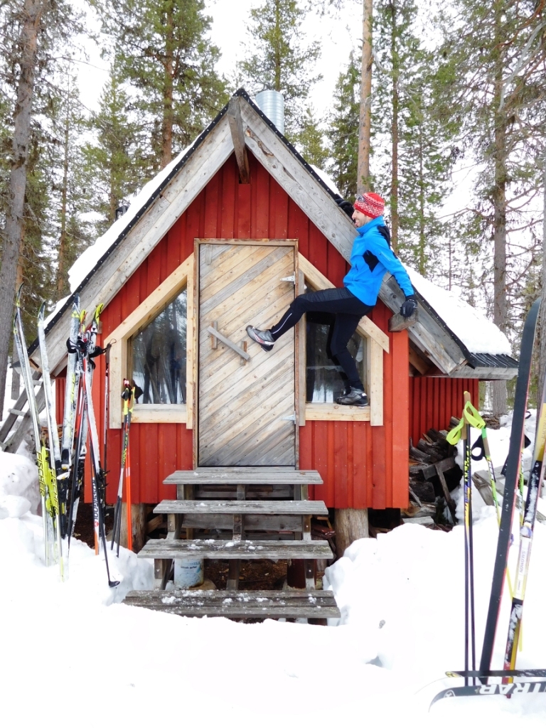pisadas, si no entre árboles y raíces. Ha sido un día muy relajado, con descanso incluido en una kota tradicional. Estas kotas son cabañas en las que los esquiadores podemos recuperar calor con el fuego y cocinar salchichas o cualquier otra cosa que llevemos encima. Hay suficiente madera para alimentar el fuego y su uso es completamente gratuito (¿nos podemos imaginar este servicio en España? Desde luego no, jajaja, siendo gratis no duraría en pie ni dos días).