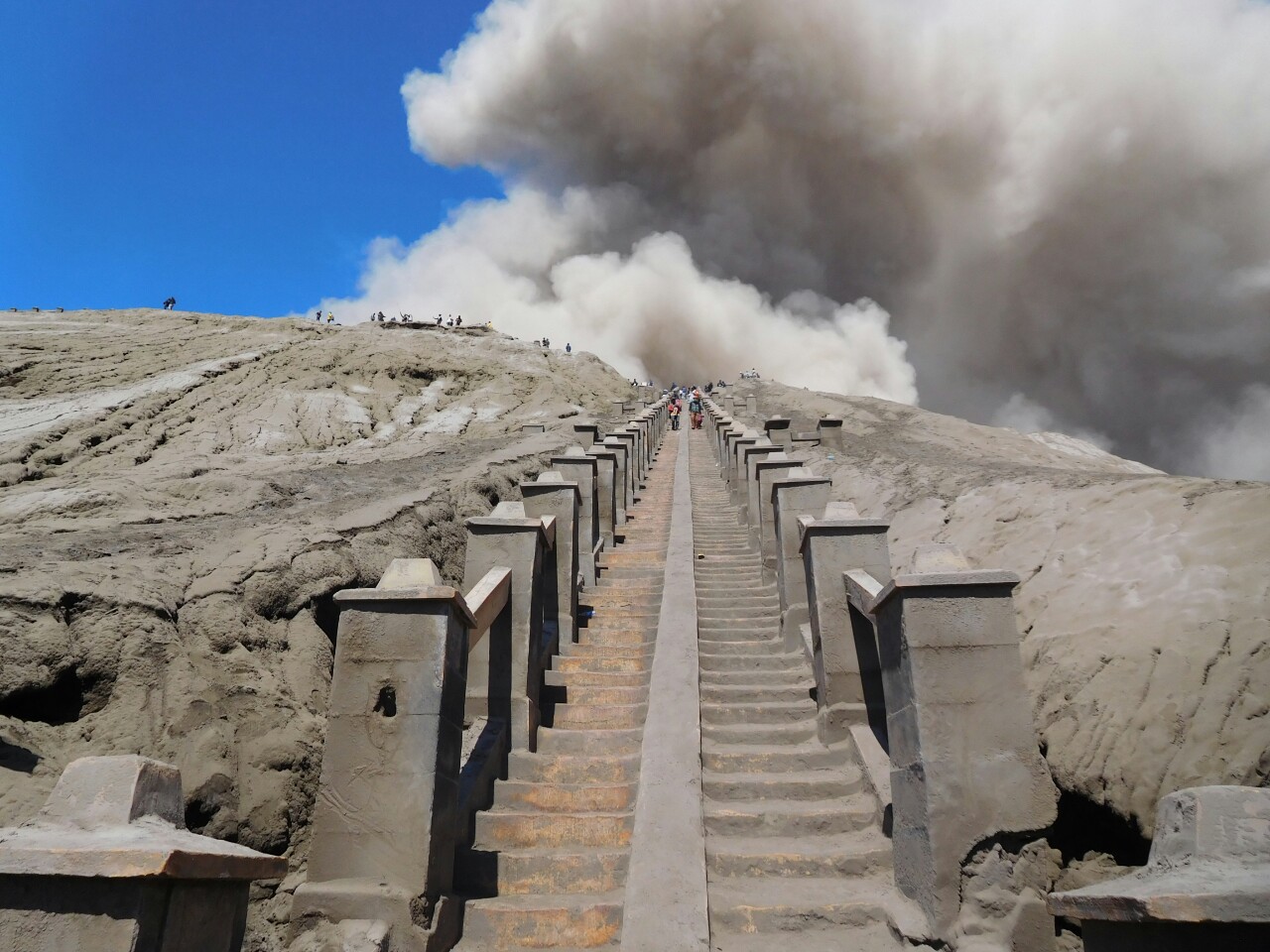 Al terminar los más de 250 escalones finales de la subida, estaba ante la majestuosidad del cráter. un poco alrededor del cráter se consiguen unas magníficas vistas del cráter, de Gunung Batok y del Laotian Pasir.
