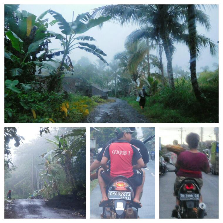 Después de dos semanas en Indonesia ya tenía claro que moverse por el país no se caracteriza por la inmediatez, peor en Bali quizá es aún más complicada la circulación que en Java. Las carreteras son casi en su totalidad muy estrechas y en malas condiciones, el tráfico es muy, muy intenso y, literalmente, ¡puedes encontrarte de todo! Gente trabajando, no boquetes y montañas de trozos de asfalto, escopetas, cena a domicilio…