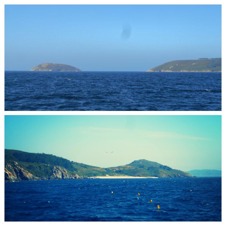 Situadas a unos 4-5 kilómetros de la costa, As Illas Ons son Ons y Onceta. La primera es la isla principal y la segunda un pequeño islote rectangular al que sólo se puede acceder en embarcación privada. No hace mucho que la isla principal era más un pueblo que un paraíso natural. En los años 50 del siglo pasado vivían aquí varios cientos de personas, por eso Ons cuenta con un pequeño pueblo con sus casas, su iglesia y hasta colegio (aunque ahora todas estas edificaciones están mayoritariamente transformadas en restaurantes o viviendas de alquiler turístico). Actualmente sólo viven en la isla de forma regular 4 personas, cuya única comunicación con el continente en época no estival es el barco que pasa dos veces a la semana, si no recuerdo mal.