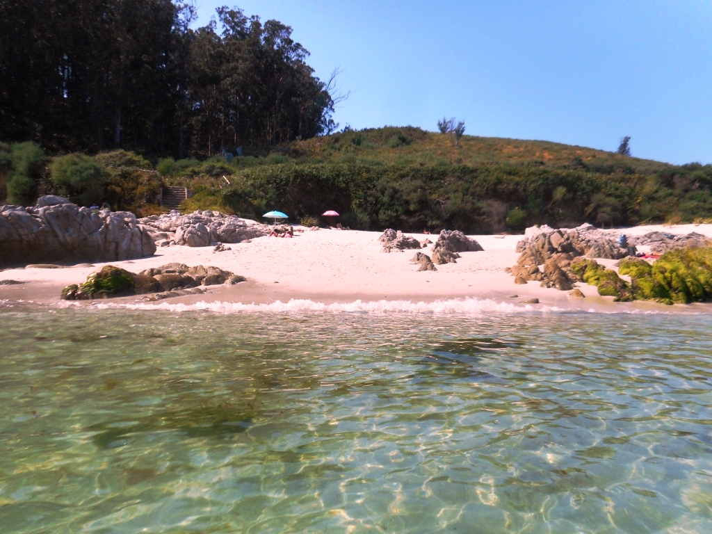 Es, no sé si oficialmente, una de las muchas playas nudistas que hay en As Rías Baixas, pero recordemos que esto es siempre algo optativo, y no hay ningún problema con que haya gente en bañador. En Galicia somos así, nos gusta la mezcla.