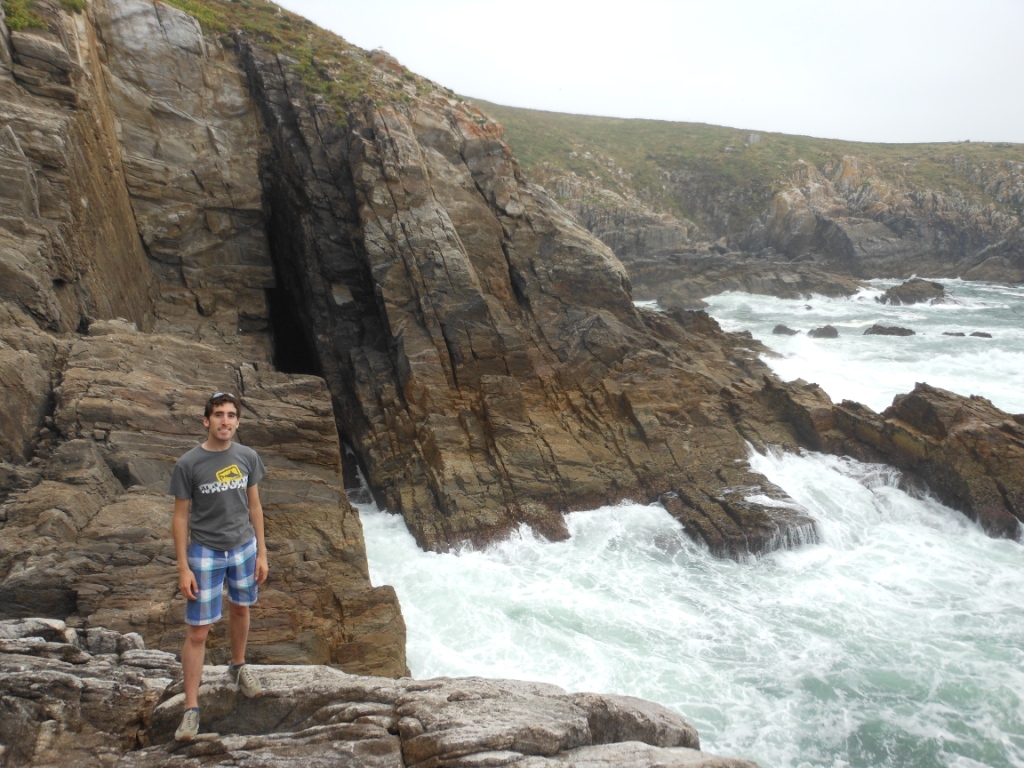 Después de un buen rato caminando nos encontramos con el famoso Buraco do Inferno, una formación geológica natural cerca de los acantilados que comunica con el mar y por el que el agua sube por el romper de las olas en días de mar agitado.