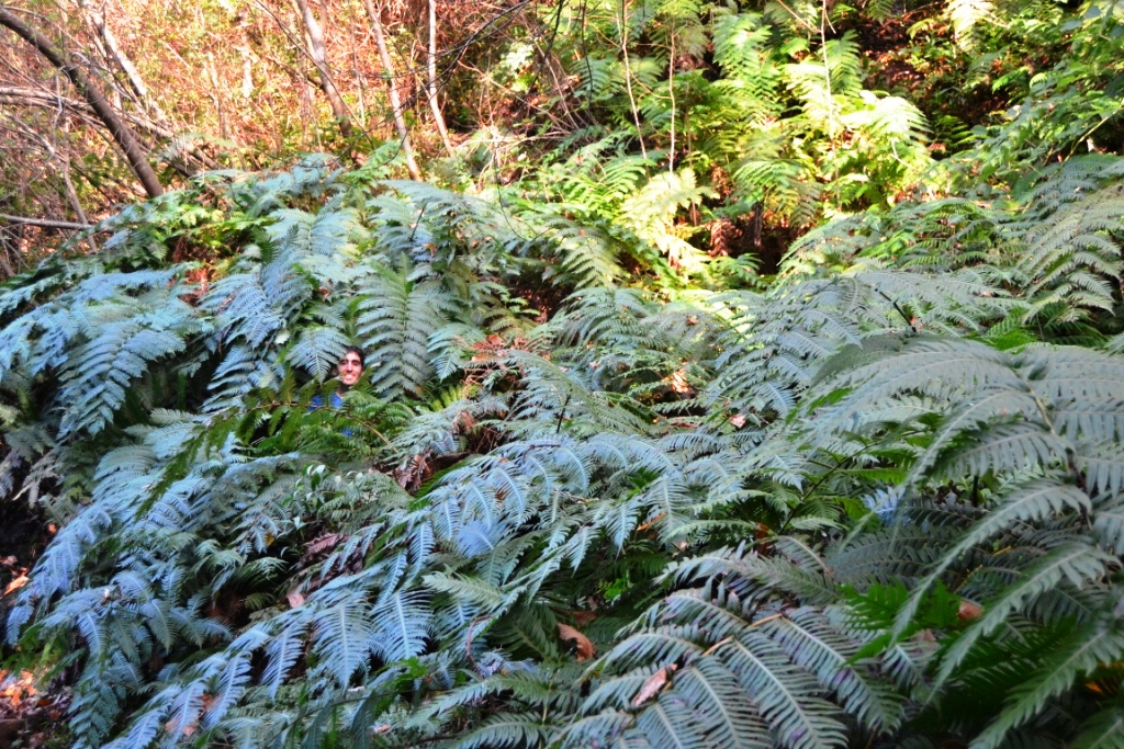 Y así continuará buena parte del sendero hasta que enlacemos con la pista asfaltada del principio para regresar al aparcamiento, rodeados de helechos enormes que parecen amenazar con devorarnos como en La Tienda de Los Horrores.