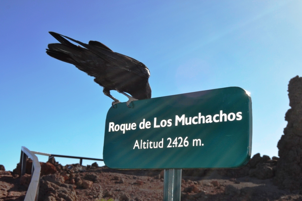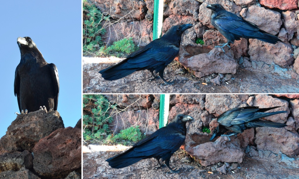 Seguimos conduciendo hasta llegar al aparcamiento público del Roque, junto a la caseta de información. Allí nos estaba esperando Lola, uno de los dos cuervos (Lola y Julio) que frecuentan la zona y que son también muy amigables.