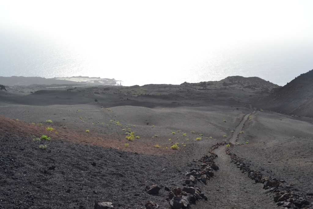 Desde su punto más alto podemos distinguir el final de la ruta junto al faro y las salinas de Fuencaliente, así como el volcán de San Antonio en su totalidad (que fue el punto de inicio de esta apasionante ruta por la lava).