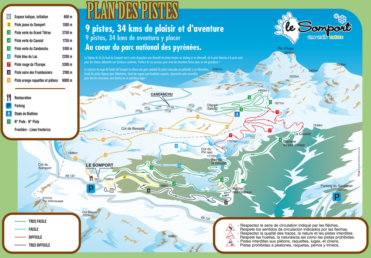 Un problema grave de Somport es la falta de señalización. No hay casi ninguna indicación por la estación y, en ciertos momentos, se hace complicado saber qué pista va en qué dirección. Lo he comentado allí un par de veces pero por ahora todo se mantiene igual. ¡Es vital coger un mapa antes de empezar a esquiar! A mí ya me pasó una vez llegar sin querer a Candanchú…
