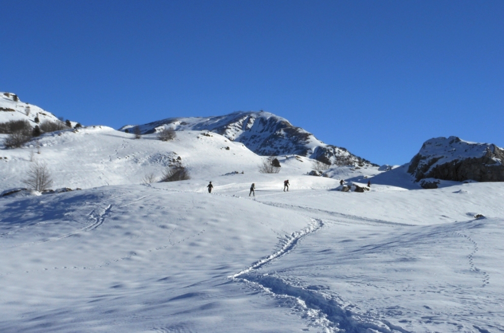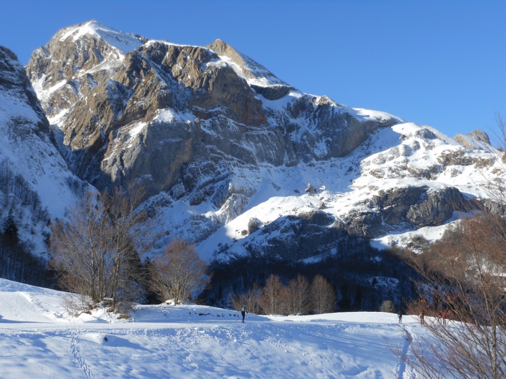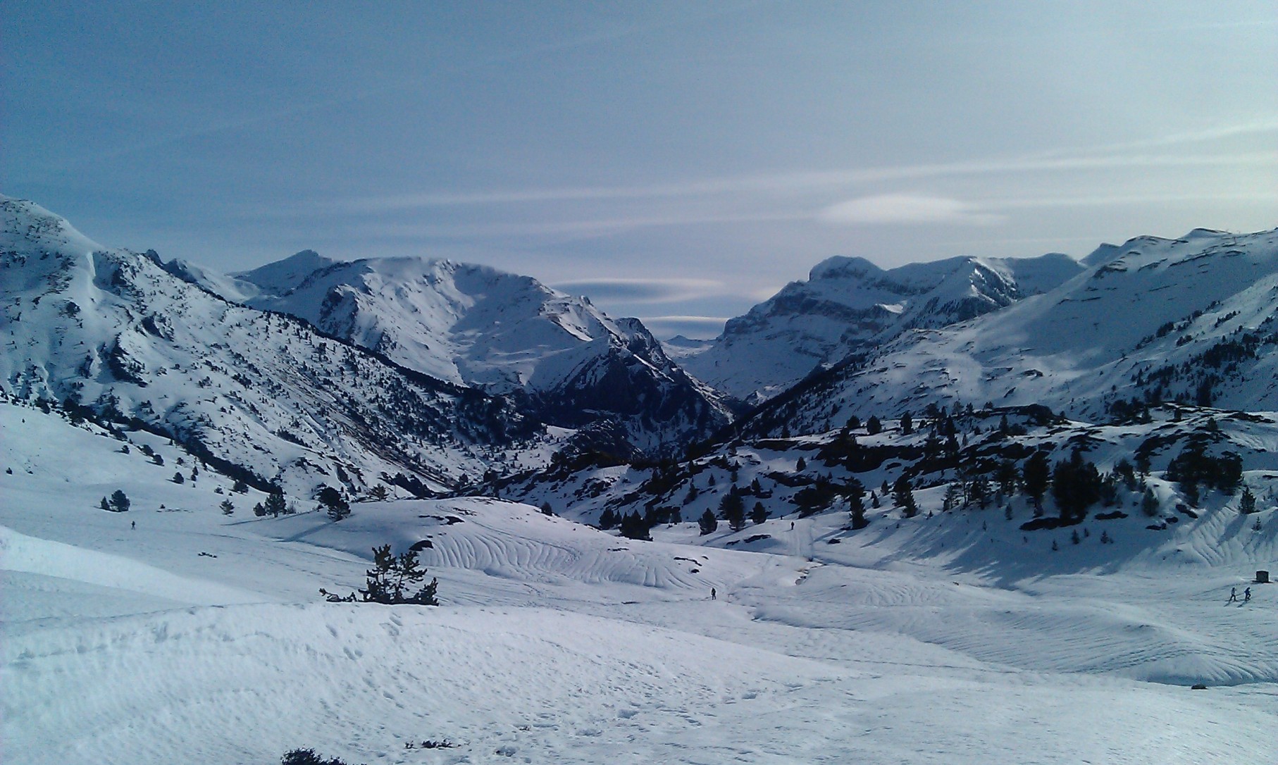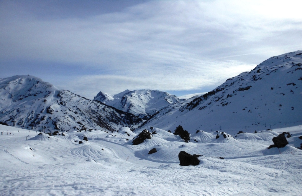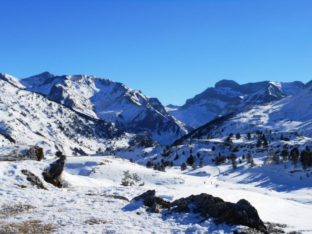 A lo largo de este bonito recorrido con raquetas se llega a entender bien los distintos entornos de la estación: grandes llanuras, algunas subidas y bajadas y pequeños bosques, todo ello limitado por los imponentes Pirineos que se levantan ante nuestros ojos en cualquier dirección.