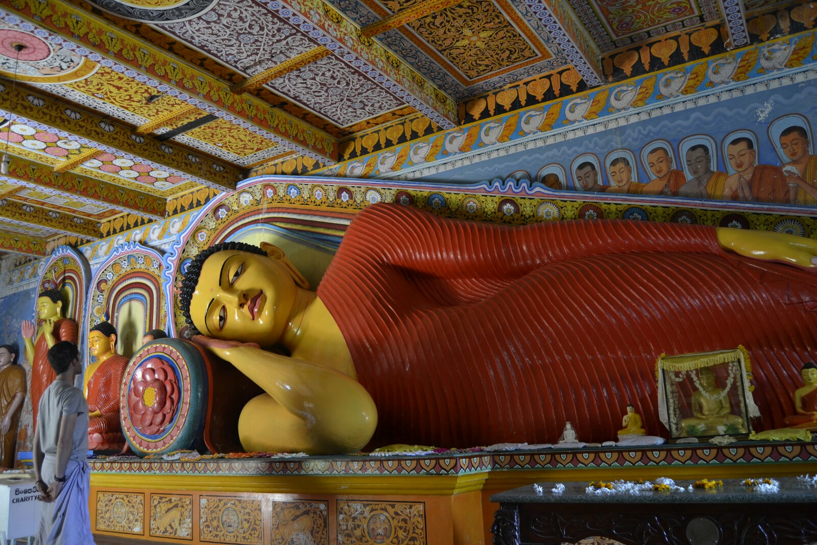 Lo que sí que me fascinó fue la estatua de Buda tumbado que hay en su interior y todo lo que la rodea: desde las otras pequeñas estatuas hasta los muy trabajados grabados del techo.
