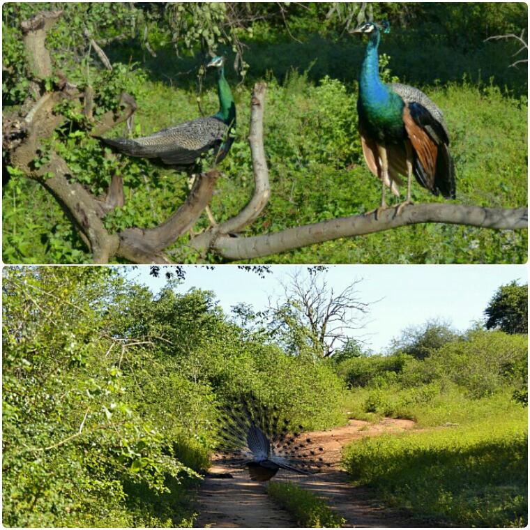 – Pavos Reales: ¡Están por todas partes!. En los árboles, en la hierba, correteando por los caminos…