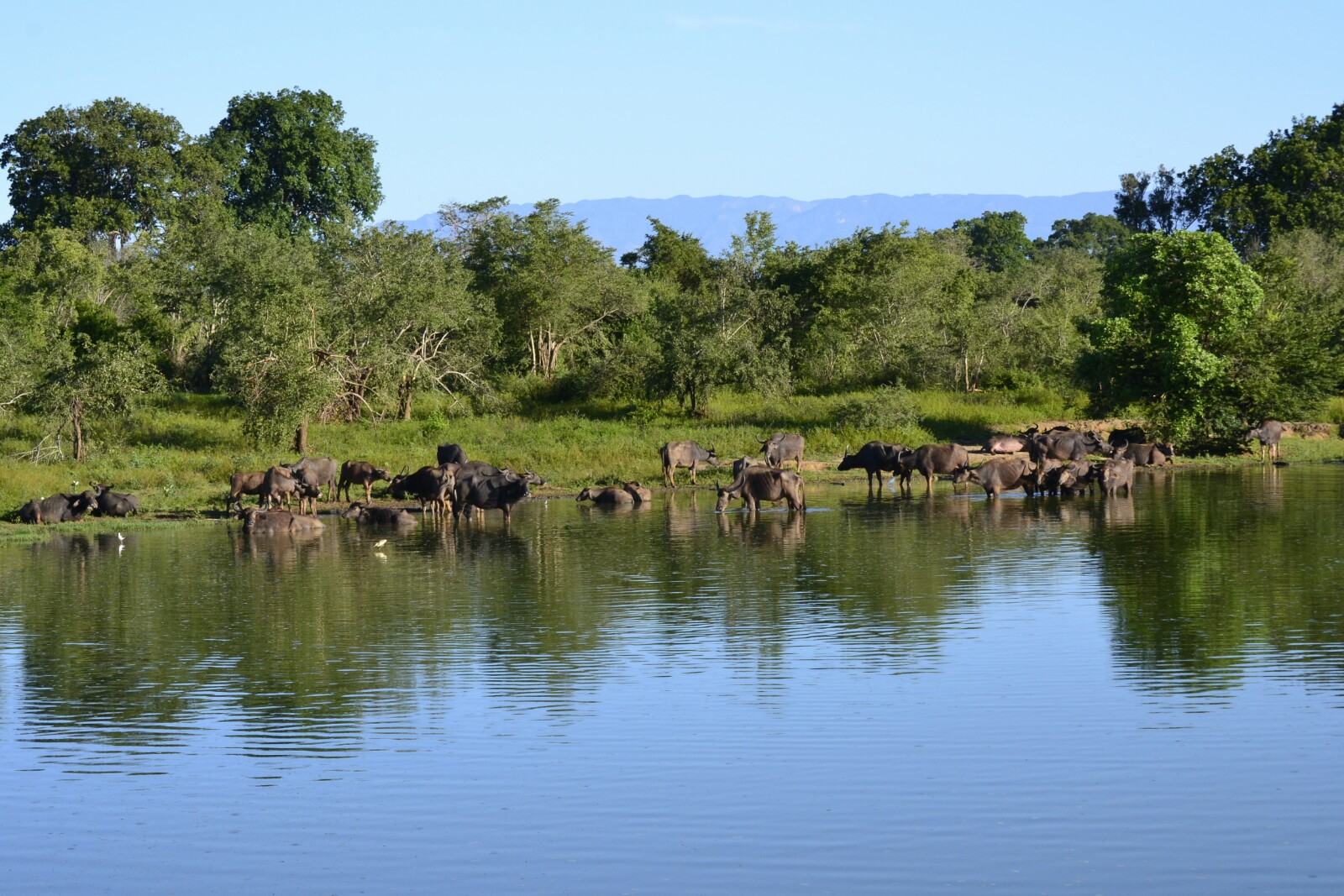 Más tarde, ya cerca del final, y en una laguna de documental (estilo a cómo me imagino que será Namibia) había otra manda de búfalos, algo más pequeña que la anterior, pero en este caso acompañada de unas vistas y un paisaje espectacular.