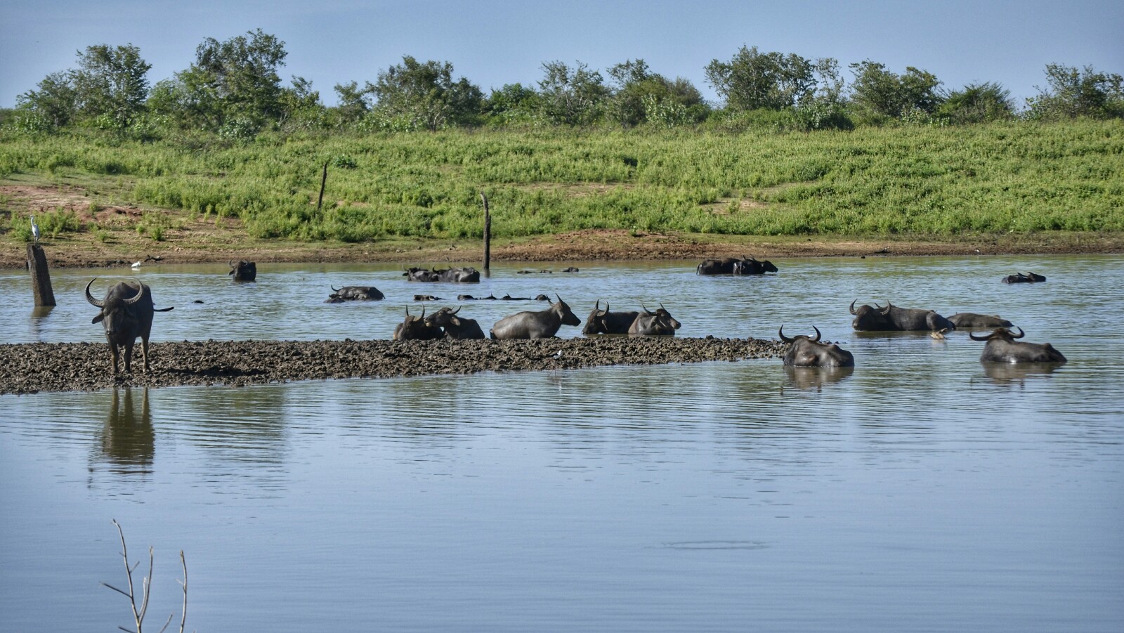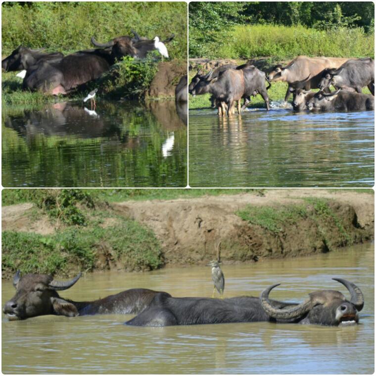 Después de ver a los primeros elefantes nos detuvimos un buen rato en una enorme charca donde una manada de búfalos estaba dándose un baño tranquilamente.