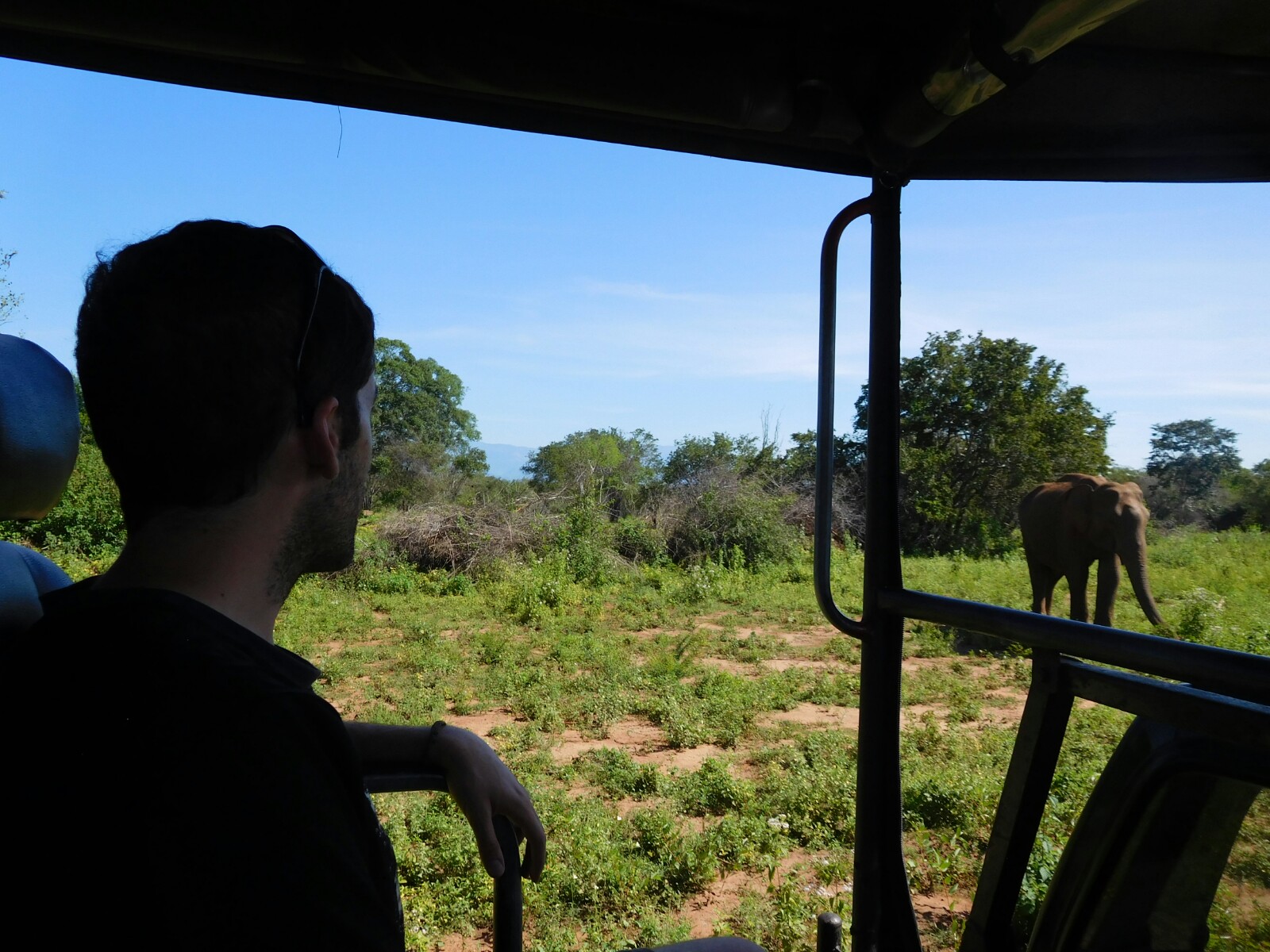 Puntualísimo vino a recogernos nuestro guía. Trabaja para Ruwan, el divertido dueño del hostal Enjoy Safari Paradise Resort (1500 LKR por noche y persona) y nos iba a llevar a mí y a los canadienses al recorrido por el parque. Nos había prometido intentar evitar la aglomeración de otros jeeps y buscar rincones del parque tranquilos y con la mayor cantidad posible de animales. Además teníamos enorme y cómodo jeep con 6 plazas entero para nosotros tres y por el mismo precio que si estuviese lleno (4500 LKR por persona incluyendo la entrada al parque).