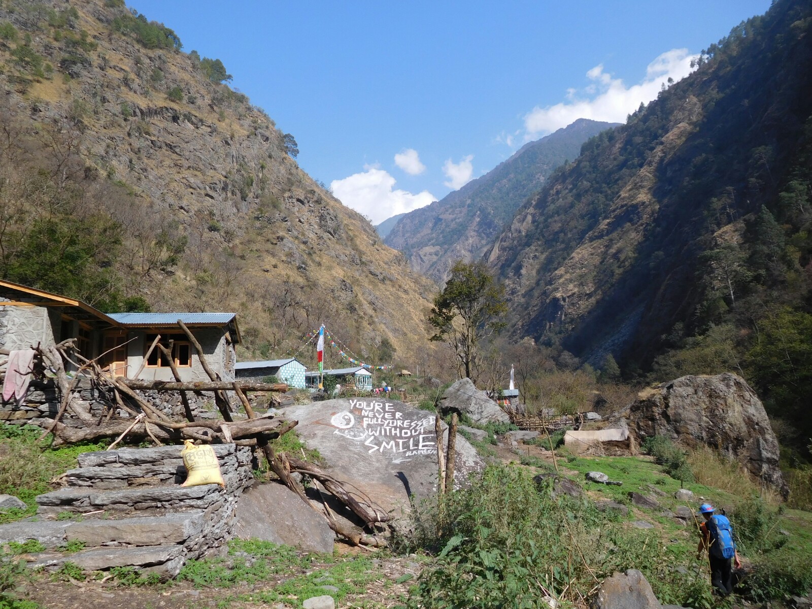 Un rato después otro bonito conjunto de casas, situado junto al río y rodeado de escarpadas montañas apareció ante nosotros. Se trataba de Pairo (también conocido por el terrible nombre de Landslide). Creía que nos íbamos a quedar ahí, ya habíamos caminado un ratillo y el sitio era bonito, pero no…