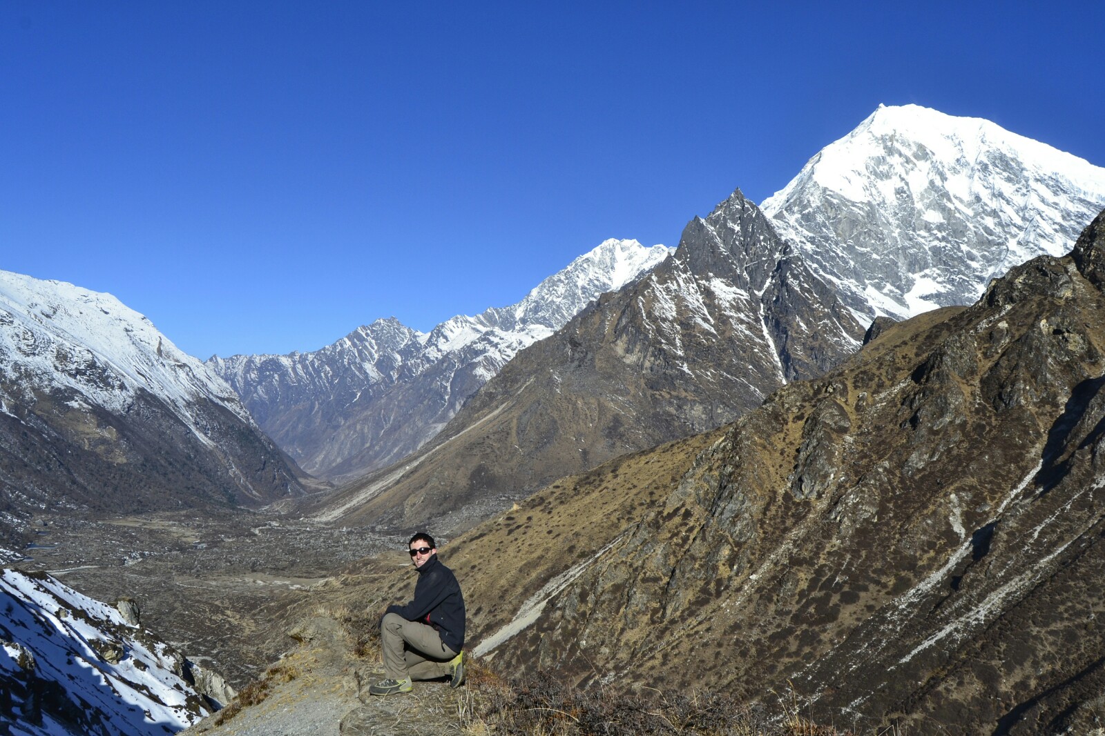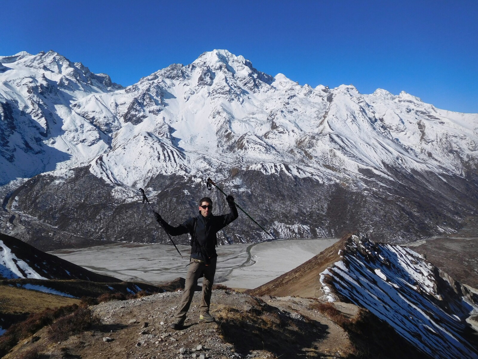Desde lo alto de Tsergo Ri, rozando los 5000 metros de altitud, las vistas son mucho más que espectaculares. Aquí en el Himalaya todo tiene otra dimensión, otro nivel, todo es enorme. Los valles son enormes, los picos son enormes…