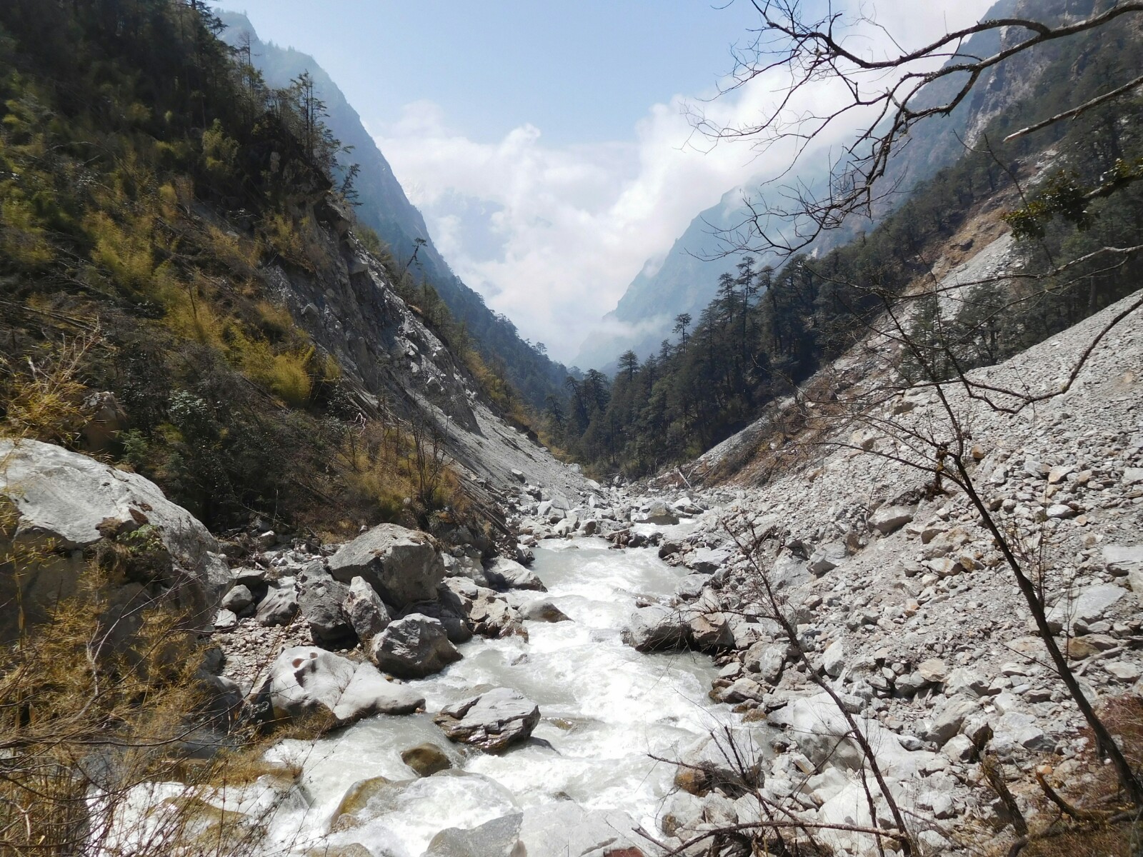 Mientras descendíamos por el mismo camino presenciamos como todo se iba cubriendo de blanco y gris a una velocidad de vértigo. Algunas nubes se quedaban atascadas, pero otras seguían avanzando tapando las vistas que habían sido tan increíbles hasta ese momento.