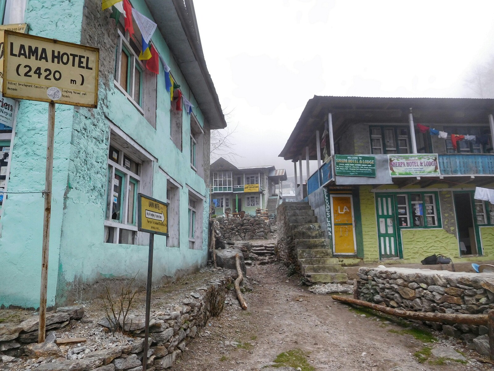 Cuando llegamos a Lama Hotel ya no había cielo azul, solo una espesa niebla que no permitía ver más allá de unos cuantos metros (y que siguió empeorando a lo largo del día).