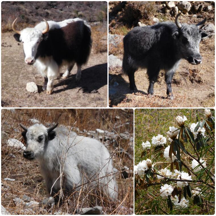 Siguiendo el camino que ya habíamos hecho los días anteriores cuesta arriba, nos cruzamos con un montón de yaks y naks (como le llaman a las hembras) y pequeños yaks. Son una auténtica monada, ¡quiero llevarme uno!