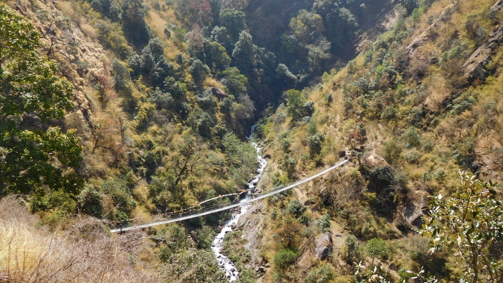 En uno de estos descansos, y tras cruzar un puente que nos indicó la buena noticia de que ya estábamos cerca, nos encontramos con un chico y una chica de Huesca que están haciendo el mismo trekking pero con una parada en el medio para ayudar a una familia que conocen a reconstruir parcialmente su casa tras los destrozos del terremoto.