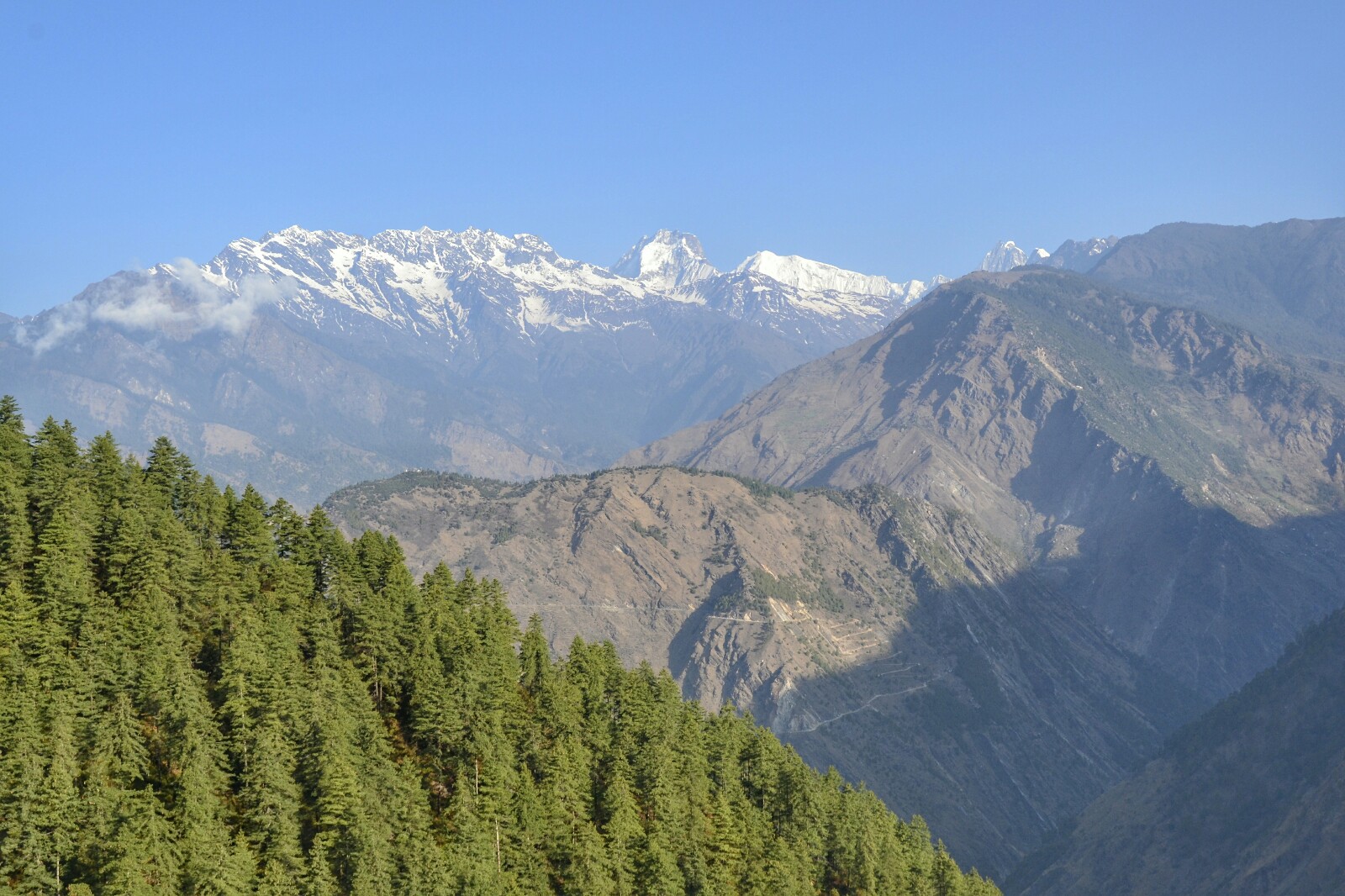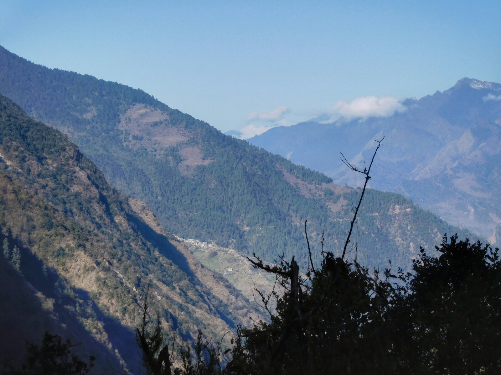 Mientras perdíamos altitud las grandes cumbres dieron paso a algún que otro frondoso bosque donde nos refugiamos un poco del sol…