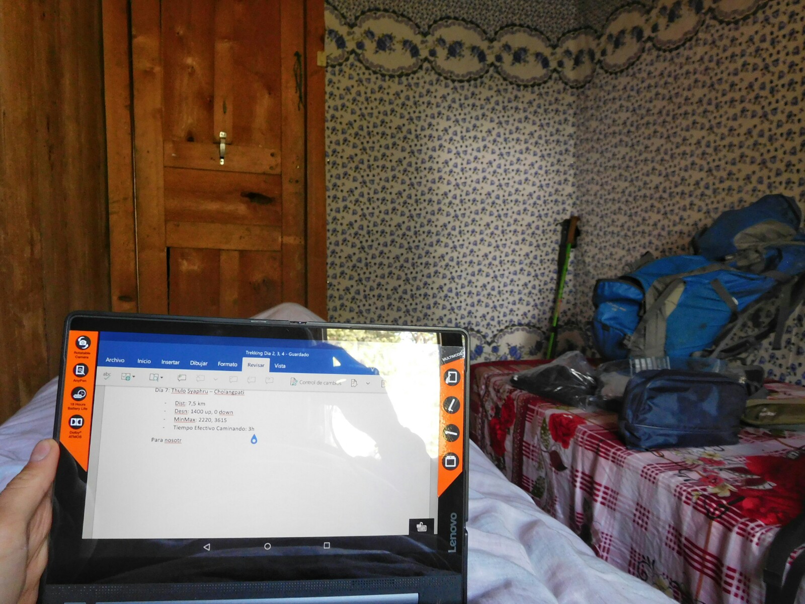 Nos levantamos a la hora habitual. La cama del Hotel Norling fue sin duda la más cómoda que tuve hasta la fecha, ¡con un colchón de verdad! Las vistas desde mi ventana no podían ser mejores con una espectacular panorámica de Ganesh Himal.