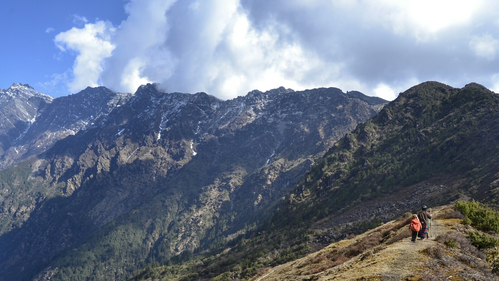 No tardamos demasiado en llegar al Thadepati Pass (3640 m), el punto más alto de todo lo que nos queda de trekking y que nos permitió ver lo que dejábamos atrás, y también lo que se avecinaba: un continuo descenso con algún que otro repecho de remontada hacia arriba hasta llegar al poblado de Kutumsang.