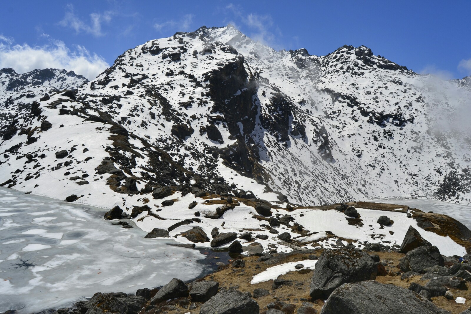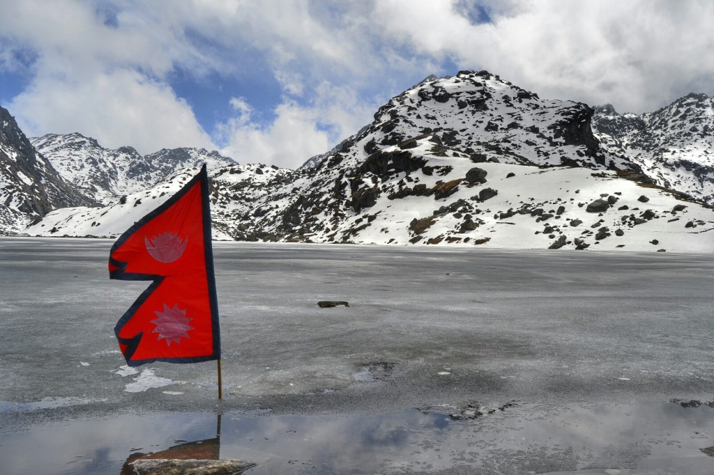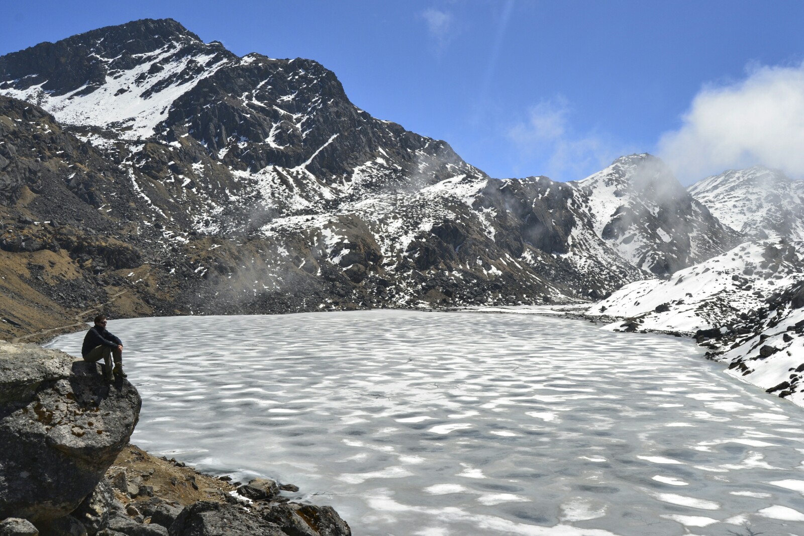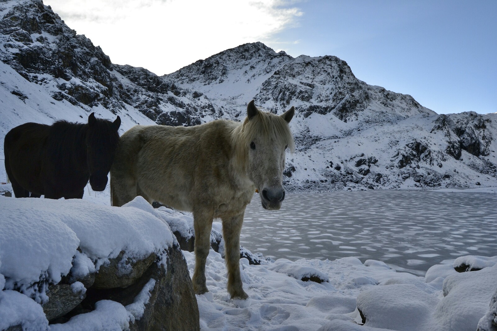 Antes de llegar a Gosaikunda nos encontramos con el primer lago real de todo el trekking: El Lago Bhairavkunda. Y sí… a pesar de ser ya 1 de abril, ¡estaba aún congelado!